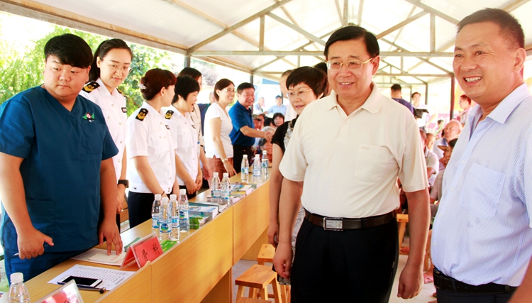 8月10日,市政协医药卫生、无党派民主人士、青年联合会三个界别委员活动组联合市卫计委、食品药品监督管理局和疾控中心,在临港区草庙子镇上庄村开展“健康中国行”——“进农村 送健康”大型义诊、查体、健康知识及食品药品安全知识宣传活动。市政协副主席张剑出席活动。