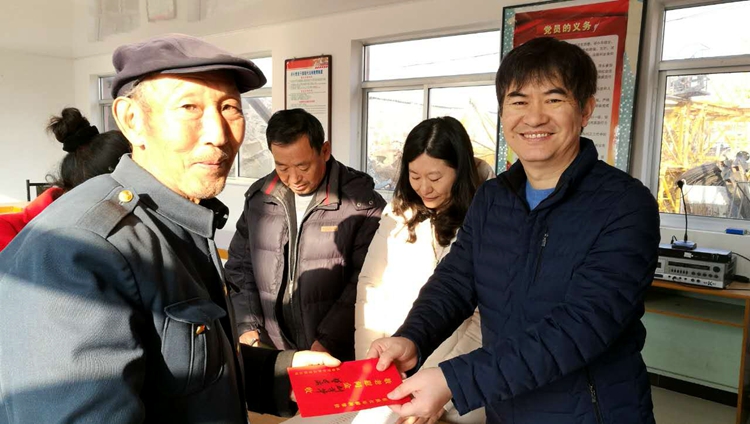 2017年1月1日,九三学社威海经区支社副主委蔡胜利前往威海市文登区葛家镇新河村开展扶贫敬老慰问活动,现场向村里107位60岁以上的老人,每人发放500元的扶贫敬老慰问金,款项合计53500元。